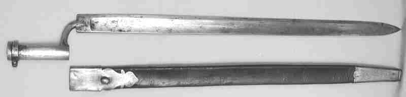 Bajonett zum Gewehr 1840: Dreikantig, Klingenlänge über Dille 526 mm, Dille 68 mm, doppelt gebrochener Dillengang und Sperring.